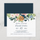 Peach cream, blush pink, ivory and navy blue bohemian pastel flowers bouquets with sage green greenery foliage and a round faux metallic gold copper glitter circle making a modern glam horizontal feminine milestone Sweet Sixteen / any age birthday party invitation with a trendy chic fully editable typography script. +++++++++++++ Suitable for spring and summer birthdays. ++++++++++++++++++++ PLEASE READ THIS BEFORE PURCHASING! This is a budget affordable wedding card printed on a paper sheet (each sheet has one card). ++++ For the best rapport price quality, our advice is to choose the Semi-Gloss paper type (it is thick enough to be used for stationery) ++++ If you need envelopes, choose the ENVELOPE OPTION. +++ Double-check all the information and spelling of your text because you will receive exactly what you see - no one else will check anything before printing. ++++ This card is designed for size 4.5" x 5.6". In the case you choose another size of the card and text goes outside page, everything needs to be fixed before adding the product to cart. Please ask Live Design Service for help.