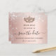 A Save the Date card for a Sweet 16, 16th birthday masquerade party. A rose gold metallic looking background decorated with faux silver glitter dust and a masquerade mask. Personalize and add a date and name/age. The text: Save the Date is written with a large trendy hand lettered style script with swashes.