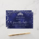 A girly and trendy Save the Date card for a Sweet 16, 16th birthday party. A navy blue uneven coloured background. Decorated with faux silver glitter dust and a tiara, crown. The text: Save the Date is written with a large trendy hand lettered style script.