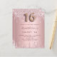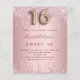 A modern, stylish and glamourous invitation for a girl's Sweet 16, 16th birthday party. A dusty rose, pink faux metallic looking background with an elegant faux glitter drip, paint drip look. The name is written with a modern dark rose gold coloured hand lettered style script. Personalize and add your party details. Number 16 is written with a balloon style font, script.