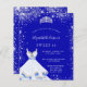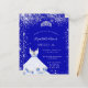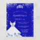 A trendy and glamourous invitation for a Sweet 16, 16th birthday party. A royal blue background with faux silver glitter dust, a tiara and a dress. The name is written with a modern hand lettered style script. Personalize and add your party details.