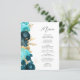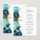 Budget Teal Aqua Gold Floral Script Wedding Menu