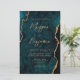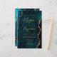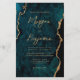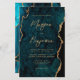 This elegant wedding invitation features a background image of teal blue watercolor agate trimmed with faux gold glitter. The customizable text combines gold-coloured modern handwriting, copperplate and italic fonts. The reverse side features a coordinating teal and gold agate design.