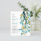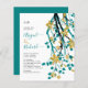 BUDGET Teal blue branch with gold flowers and initials wedding invitation. A beautiful design for your wedding showcasing a cascading blue and black branch with gold blossoms. The back is of teal blue colour.