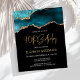 This trendy 40th birthday invitation features a watercolor image of an agate geode in shades of teal with faux gold highlights. The words "40th Birthday" appear in faux gold glitter in decorative modern handwriting font. Customize it with the name of the honoree in gold coloured text and the details in white. The same teal agate image appears on the reverse side.