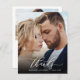 Budget Modern Elegant "Thanks" Script 2 Photo Wedding Thank You affordable low budget thin card. Stylish wedding thank you template featuring a full vertical photo on the front with overlay text "Thanks" in a hand lettered calligraphy or typography script font in white on the picture. At the reverse side one photo and pre-made thank you message. ***PLEASE NOTE! *** BUDGET PAPER/FLYER IS PAPER THIN. *** UPGRADE THE PAPER FOR A THICKER PAPER. *** https://www.zazzle.com/chic_thanks_script_2_photo_wedding_thank_you_card-256227626541046163?dz=953dde5b-1853-4e4d-b3d2-7c6a9f1e3716 https://www.zazzle.com/chic_script_elegant_2_photo_wedding_thank_you_card-256356327430102711 Easy to add your name and thank you message. If you prefer to handwrite your note, just delete the sample text to make more space. If You need help, please contact designer!