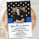 Thin Blue Line Police Graduation Invitations or Police Retirement Party Invitations. Celebrate years of dedicated service, or celebrate your new police academy graduate, and invite friends and family to your law enforcement party with this Thin Blue Line Flag Police Retirement Invitation and Police academy graduation invitations - USA American flag design in Police Flag colours, distressed design. This police officer retirement invitation is also perfect for police academy graduation invitations, change venue in personalization. See our collection for matching police retirement gifts, police graduation gifts,party favours, and supplies. COPYRIGHT © 2021 Judy Burrows, Black Dog Art - All Rights Reserved. Budget Thin Blue Line Photo Police Graduation