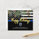 Send Merry Christmas greetings to friends, business' , fellow law enforcement departments and your community with this unique Thin Blue Line Police Department Christmas Card - American Flag in police flag colours, modern black and blue with holly leaves and berries and elegant gold script. Personalize with police department logo, message and department . These budget merry christmas postcards need to be mailed as oversized postcards so may incur standard postage fees but they don't need an envelope or a return address label. COPYRIGHT © 2020 Judy Burrows, Black Dog Art - All Rights Reserved. Budget Thin Blue Line Police Christmas Cards
