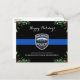 Send Merry Christmas greetings to friends, business' , fellow law enforcement departments and your community with this unique Thin Blue Line Police Department Christmas Card - Modern black and blue with holly leaves and berries. Personalize with police department logo, message and department . These budget merry christmas postcards need to be mailed as oversized postcards so may incur standard postage fees but they don't need an envelope or a return address label. COPYRIGHT © 2020 Judy Burrows, Black Dog Art - All Rights Reserved. Budget Thin Blue Line Police Department Christmas Holiday Postcard