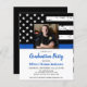 Thin Blue Line Police Graduation Invitations or Police Retirement Party Invitations. Celebrate years of dedicated service, or celebrate your new police academy graduate, and invite friends and family to your law enforcement party with this Thin Blue Line Flag Police Retirement Invitation and Police academy graduation invitations - USA American flag design in Police Flag colours, distressed design. This police officer retirement invitation is also perfect for police academy graduation invitations, change venue in personalization. See our collection for matching police retirement gifts, police graduation gifts,party favours, and supplies. COPYRIGHT © 2021 Judy Burrows, Black Dog Art - All Rights Reserved. Budget Thin Blue Line Police Officer Graduation