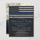 Thin Blue Line Police Retirement Invitations . Celebrate years of dedicated service, and invite friends and family to your law enforcement retirement party with this Thin Blue Line Flag Police Retirement Invitation. USA American flag design in Police Flag colors, modern trendy black white and blue design. This police officer retirement invitation is also perfect for police academy graduation invitations, change venue in personalization. See our collection for matching police retirement gifts, police retirement party favors, and supplies. COPYRIGHT © 2021 Judy Burrows, Black Dog Art - All Rights Reserved. Thin Blue Line Police Officer Retirement Party Invitation Postcard