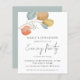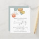 Trendy Leaves Wedding Evening Party Invitation. A budget price SMALLER 4.5” x 5.6” alternative. Available in a SEMI GLOSS 110 lb CARD STOCK which is the default option (recommended for invitations), OR a SATIN FINISH 80 lb THINNER PAPER STOCK (ideal for enclosures). Envelopes are an optional extra and are slightly larger than the card size. A set handwritten style for Evening Party and the rest of the text you can easily personalise. ARtsy watercolor leaves in autumn shades of burnt orange, yellow and powder blue flow from top left.