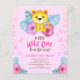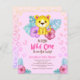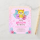 A cute BUDGET baby shower invitation with bright colours, tropical monstera leaves and hibiscus flowers, an adorable baby leopard drawing, and rainbow animal print pattern. This invite is customizable and can be personalized! This is a great invitation for a jungle themed baby shower for a little girl!