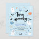 Budget two spooky blue Halloween cute ghost boy 2nd birthday party invitation. Modern Halloween-themed design for a spooky party! This birthday invitation features spider's webs, ghosts, pumpkins, bats, spiders, leaves, corns, stars and daisies. This invite is great for little boys!