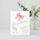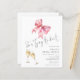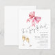 Budget She is Tying The Knot Pink Bow Bridal Shower. A smaller 4.5 x 5.6” budget priced alternative on a semi gloss 110lbs similar in thickness to a postcard. There is ONE per sheet. The main header is in an elegant set script. The rest of the text you can easily personalise.