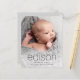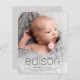 A full-bleed photo birth announcement with large moveable name element in a sleek modern font with birth details below. The back of the card allows for 2 additional newborn photos and parents personal message or additional birth information. All of the elements on this card are customizable so it's easy to create a one of a kind design by swapping out the fonts and colours of text and background colour to meet your specific needs. The back of the card is an ideal place to add siblings photos as well to include them on the exciting announcement of their new brother or sister. This would make a lovely adoption or pregnancy announcement as well.