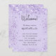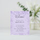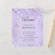 A modern, elegant wedding program, timeline. A violet, lavender coloured background decorated with faux glitter dust. Personalize and add your names and wedding details. Black coloured letters. If you have more text it's possible to reduce the line space.