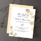 A white background decorated with golden eucalyptus, sprigs. Personalize and your name and ceremony details.