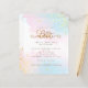 Watercolor Blue Pink Heart Script Celebrate Engagement. A budget price SMALLER 4.5” x 5.6” alternative. Available in a SEMI-GLOSS 110 lb CARD STOCK which is the default option (thicker for invitations), OR a SATIN FINISH 80 lb THINNER PAPER STOCK (ideal for enclosures). Envelopes are an optional extra and are slightly larger than the card size. A beautiful Watercolor wash is in the background with gold splashes to the top right and bottom left. Celebrateis set in an elegant script with stylish flourishes. Easily personalise the rest of the text to your own.