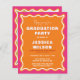 Budget Retro Squiggle Wavy Pink Orange Photo Graduation Invitation