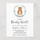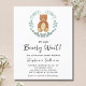 Cute bear-theme baby shower budget invitation featuring a hand-painted illustration of a cub with watercolor eucalyptus greenery. The text says "We can bearly wait!" in stylish typography. Great for a gender-neutral shower.