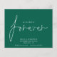 A value for money BUDGET alternative on a smaller size 4.5 x 5.6” semi-gloss 110lbs weight, which is of similar thickness to a postcard (however is not suitable to use as a postcard.). PLEASE NOTE there is ONE invite per sheet. Budget We Decided on Forever Emerald Green Save The Date. Elegant typography design to invite your guests to save your date. We Decided on Forever which is in a stylish set script is in the centre. The rest of the text you can easily personalise. Text and background colours can be changed if you wish to better suit your wedding theme via the customise further option.