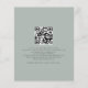 A value for money BUDGET alternative on a smaller size 4.5 x 5.6” semi-gloss 110lbs weight, which is of similar thickness to a postcard (however is not suitable to use as a postcard.). PLEASE NOTE there is ONE invite per sheet. Script We Do Light Sage QR Code Wedding Invitation. Add your QR code to your wedding website on the back makes this a convenient option for your guests to RSVP and see all the details without the need for separate RSVP and details cards. A simple yet elegant design on a background of light sage green. Stylish set script We Do takes centre stage at the top.The rest of the text you can easily personalise. Text and background colours can be changed if you wish to better suit your wedding theme via the customise further option.