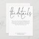 PLEASE NOTE there is ONE per sheet. Available in a SEMI-GLOSS 110 lb CARD STOCK which is the default option (thicker for invitations, similar in thickness to a postcard), OR a SATIN FINISH 80 lb THIN PAPER STOCK (more suited to thin enclosures). Let your guests know details such as directions and accommodation information for your wedding when you send their invitations. This elegant design has set stylish large typography for the heading The Details and the rest of the text can be easily personalised to your words. You can choose any colours of your choice for the text and background colours on both sides via the customise further option.