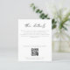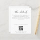 A value for money BUDGET alternative on a smaller size 4.5 x 5.6” semi-gloss 110lbs weight, which is of similar thickness to a postcard (however is not suitable to use as a postcard.). PLEASE NOTE there is ONE per sheet. Budget Wedding Details QR Code Script Enclosure. Let your guests know details such as directions and accommodation information for your wedding when you send their invitations. This elegant design has set stylish large typography for the heading The Details and the rest of the text can be easily personalised to your words along with your website QR code. You ca remove the QR code if you wish via custmise further. You can choose any colours of your choice for the text and background colours on both sides via the customise further option.