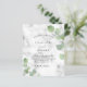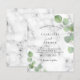 Marble print as background decorated with eucalyptus greenery, sprigs. Personalize and your name and ceremony details.