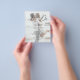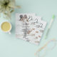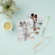 This modern wedding card has a warm, minimalist design. The front features a lively script text above your first names and date. On the back, we've set the background as transparent, so that the colour of the paper will serve as the base colour. You can choose a colour for the background, if you prefer. All aspects of this design can be edited (font, text size, or floral accents moved/removed) to fit your needs. Please contact me if you need help with this design.
