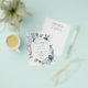 This modern wedding card has a warm, minimalist design. The front features a lively script text above your first names and date. On the back, we've set the background as transparent, so that the colour of the paper will serve as the base colour. You can choose a colour for the background, if you prefer. All aspects of this design can be edited (font, text size, or floral accents moved/removed) to fit your needs. Please contact me if you need help with this design.