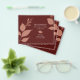 This simple yet elegant save the date features modern greenery in terracotta. Use the template fields to update your details in white over a maroon background. Change the colour of the leaves and background to suite your wedding theme. The card reverses to a complimentary colour. To see the complete wedding stationery suite visit www.zazzle.com/dotellabelle