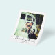 This is a budget modern and minimalist photo wedding thank you card printed on a paper flyer. The design uses a minimalist single photo and a handwritten script paired with a typewriter font.