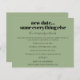 A value for money BUDGET alternative on a smaller size 4.5 x 5.6” semi-gloss 110lbs weight, which is of similar thickness to a postcard (however is not suitable to use as a postcard.). PLEASE NOTE there is ONE invite per sheet. Wedding New Date Same Everything Else Sage. When things happen and unfortunately it is necessary to change the date of your wedding, this will enable you to let your guests know your new date as soon as possible. This simple typographical design with black text on sage green is fully customisable. Easily personalise the text on the front and back. You can also change font styles and colours and background colours if you wish via the customise further option. If you need any help please message me.