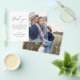 Elevate your gratitude with our elegant thank you cards featuring modern script and your favourite wedding photo. These cards offer a stylish and minimalist design that perfectly complements any wedding aesthetic. Personalize them with a heartfelt message of appreciation to convey your thanks to friends and family for their love and support. Crafted with high-quality materials, these cards provide a sleek and sophisticated way to express your gratitude. Whether you're thanking guests for their presence or gifts, our Modern Script Simple Photo Wedding Thank You Cards add a personal touch to your expressions of thanks. With their clean lines and contemporary charm, they create a lasting impression that reflects the beauty of your special day. Share your gratitude in style with our Modern Script Simple Photo Wedding Thank You Cards, and let your appreciation shine through with every word.