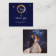 Show your gratitude with this Budget Wedding Thank You Card. The front features a celestial-inspired monogram of the sun, moon, and stars, surrounded by a navy blue background with shimmering stars. On the back, there’s space for a personal wedding photo, adding a memorable touch. This affordable card combines elegance and romance, perfect for couples wanting a unique and budget-friendly thank you card.