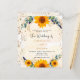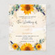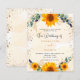 A white and golden watercolored background decorated with sunflowers, eucalyptus greenery and golden leaves and faux gold glitter dust. Personalize and add your names and party details.