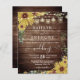 Rustic wedding invitations printed on lightweight paper ideal for conservative budgets and hand-delivering to guests. The design features sunflowers and vines greenery, string lights, mason jar lights, party lights against a country barn wood background. Ideal for outdoor, backyard or barn summer and fall weddings. All text is editable to change the wording to fit your needs. Contact the designer via Zazzle Chat or makeitaboutyoustore@gmail.com if you'd like this design modified, on another product or coordinating items.