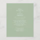 ⭐ NOTE: This is a low-budget flyer paper option. SATIN is the thicker finish here, matt is like paper. Envelopes NOT included. For more traditional invitation paper weights and sizes view the attached collection or transfer the design via the tools on your product page to 'invitation'. ⭐ Sage apple monochrome green wedding item with trending typography style and plenty of template fields to create your own custom unique design. For assistance access, Zazzle's FREE LIVE DESIGNER or use the TRANSFER tools on the page.⭐Please view the attached collection and 'additional products' to view the full wedding suite featuring this design or colour theme. This may include wedding and bridal shower invitations, rehearsal dinner invites, bridesmaid lunch invites along with save the date, rsvp's, favour tags, stickers and much more. Suitable for spring, summer, autumn, fall, winter weddings, indoors or outdoors, mountain, lake, barn, countryside, castle, garden, backyard. Tons of great designs and options for all budgets.