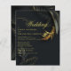 Low Budget wedding - a Stunning wedding invitation featuring black and gold tropical ferns -