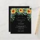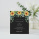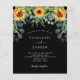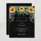 A black background decorated with sunflowers, eucalyptus greenery. Personalize and add your names and party details.