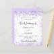 A stylish white background. Decorated with violet, lavender coloured faux glitter dust. Personalize and add your names and details.