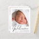 A budget-friendly gender-neutral baby birth announcement. The front features your newborn's photo, full name, arrival date and birth stats, and "Welcome" written in a stylish script. On the reverse side, you can add three additional photos and parent and sibling names, and a thank you, visitation or other message.