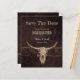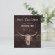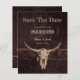 Budget western country vintage antique cowboy style. Fun brown beige wood texture wedding save the date flat cards. Rustic bull cow skull invitations. Use a little humour with this cute, funny farmhouse style design. Typography can be personalized. Old wild west, unique. Cool, trendy farm animal. Customize script and typography. Image copyright Marg Seregelyi Photography.