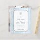 This whimsical wedding invitation features a navy blue hand-drawn frame against a light blue striped background. At the top of the invite, there is a doodle scribble illustration of a diamond ring in a seashell ring box. The details follow with the couple's names in charming script lettering. Ideal for summer, Italian, beach, yacht, and coastal wedding themes. Cards reverse to an engagement photo of your choice. Edit most wording and text colors to make this sweet wedding invite fit your event needs and personal style. As part of Zazzle's budget selection, this sheet doesn't come in standard card sizes. To get this design on a standard card, you can find it in the collection or use the Zazzle Make Machine to transfer it onto your preferred product. View the collection linked on this page for the full wedding suite or visit our store for more wedding invitations.
