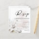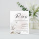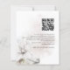 A value for money BUDGET alternative on a smaller size 4.5 x 5.6” semi-gloss 110lbs weight, which is of similar thickness to a postcard (however is not suitable to use as a postcard.). PLEASE NOTE there is ONE per sheet. Budget White Florals Watercolor QR Code Wedding RSVP. Give your guests the choice to reply by postinA minimalist floral design in soft white and gray to the bottom left corner and a pale wash in subtle frosty blue and pink in the background. RSVP is in a modern set script and easily personalise the rest of the text. For convenience of your guests to reply either by sending this back to you or altrenatively to reply online. Add your QR code to your reply page on your wedding website on the back by replacing the QR code on the sample. You can create QR codes for free online. Simply search “QR code creator” and lots of options come up to create for free.