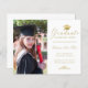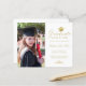This elegant personalized budget photo graduation announcement card features your photo on the left and to the right a faux gold grad cap with the word "Graduate", class/year, name and other ceremony details in formal faux gold script calligraphy to personalize on a white background. Designed by Susan Coffey.