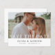 Budget Modern and Elegant Photo Save the Date Wedding Card. The save the date invitation card includes white typography and chic and simple design on a white background that you can add your customized engagement photograph picture to.