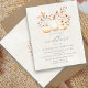 Elegant white pumpkins are nestled in red, orange and sage green leaves and wildflowers.